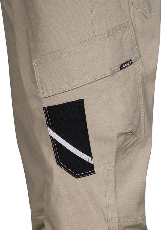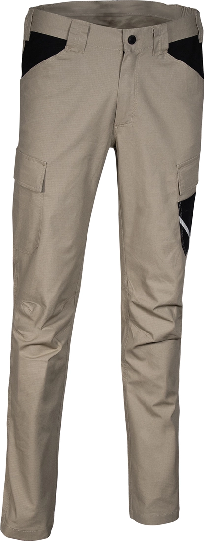 Descrizione:tessuto ultraleggero (200g/m2) e traspirante, trama ripstop, tessuto ad elevata percezione elastica, ampie tasche anteriori, elastico in vita, tasche laterali chiuse da pattina di cui una con taschino-porta attrezzi, inserto riflettente, doppia tasca posteriore di cui una chiusa con pattina, taglio ergonomico di gambe e ginocchia