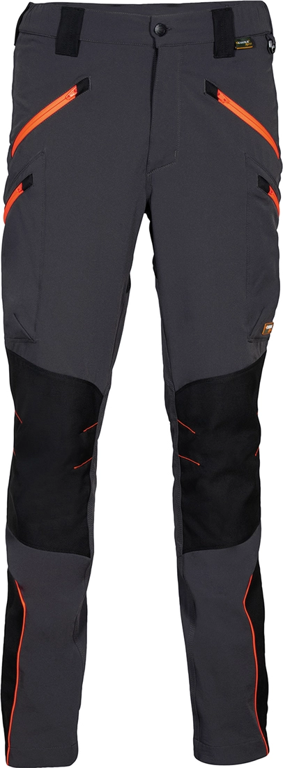 Descrizione:2 ampie tasche anteriori chiuse con zip, 2 tasche laterali chiuse con zip, 2 tasche posteriori chiuse con zip, D-Ring, elastico in vita, parte posteriore vita rialzata, taglio ergonomico di gambe e ginocchia, tessuto antiabrasione nei punti di maggior sollecitazione, tessuto elasticizzato